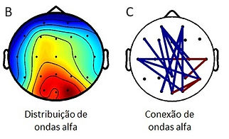 Figura B - mostra a distribuição topográfica da atividade cerebral no escalpo;